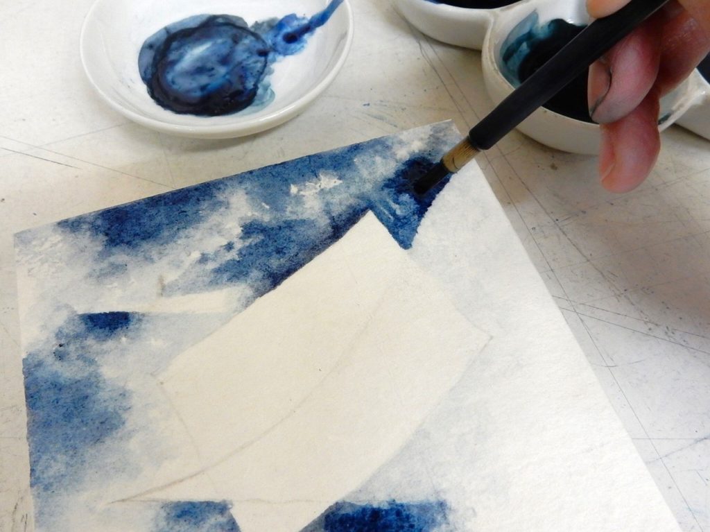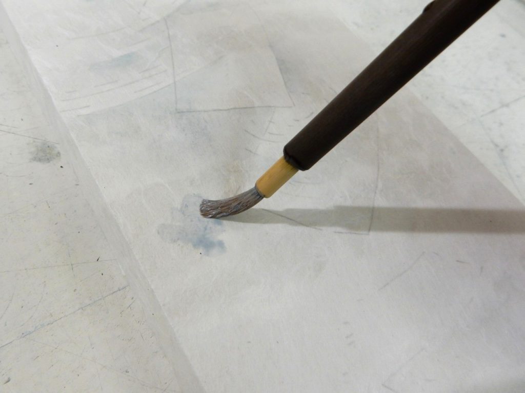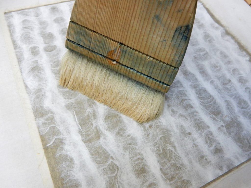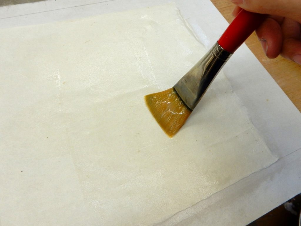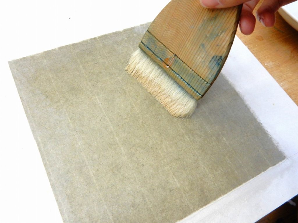和紙の滲み止め、ドーサ引きです。