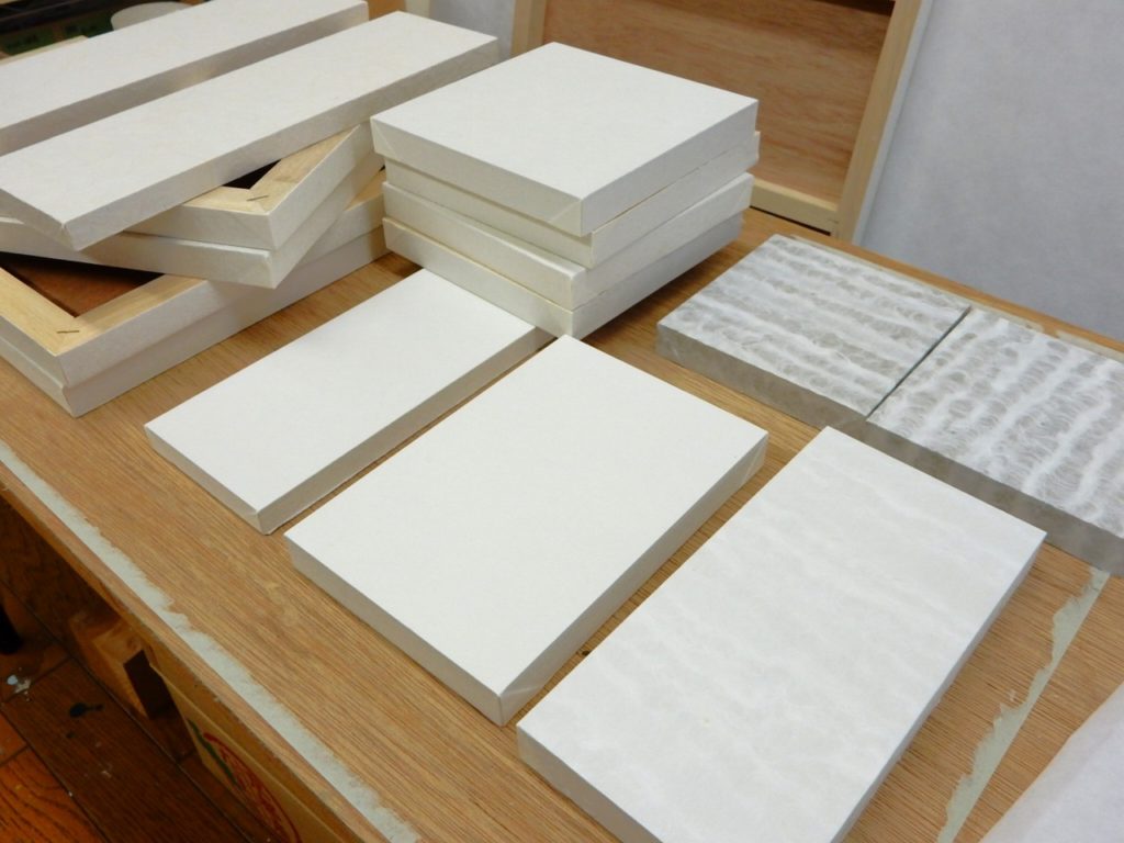 紙張りしていました12cm四方のパネル、こうした感じで張りあがりました。