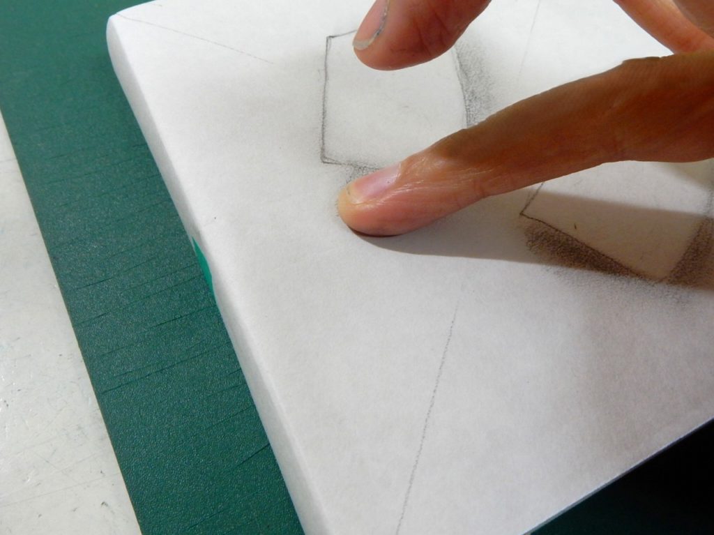 こうして指で雰囲気を作るタイプの下図は、やり出すと手が汚れるのもあり、こうしたモヤモヤを本紙に転写する時こまることもあり、
