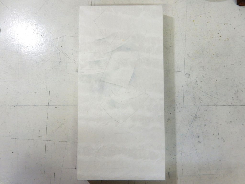 全面に糊を引かない「袋貼り」という方法もありますが、今回は小品用なので全面糊付け。