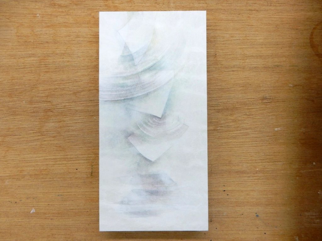 形がとれたら、パネルに張り込んだ和紙に転写します。