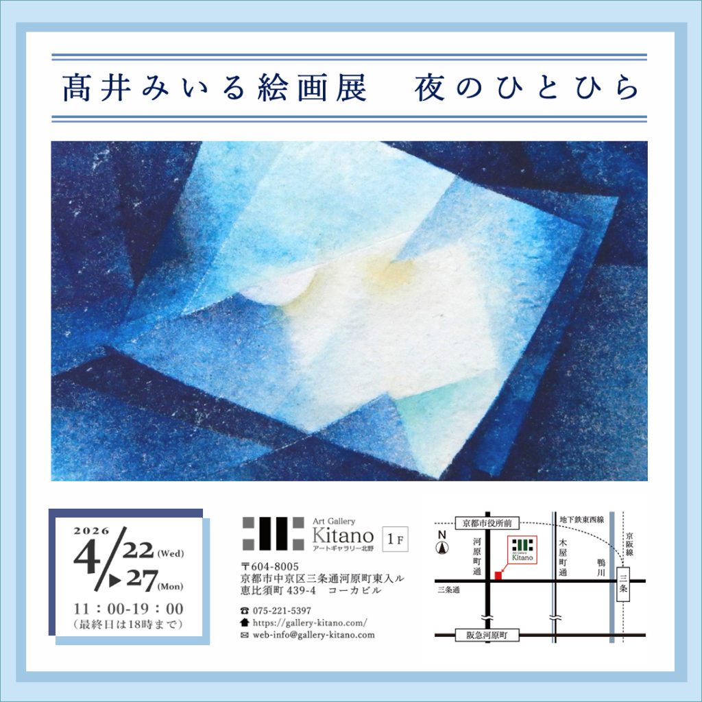 2026年の最初の個展は、京都三条河原町・アートギャラリー北野にて開催いたします。