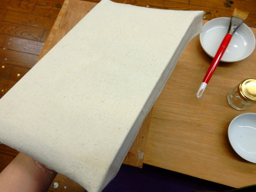 こちらのページでは「綿布のパネル張り込み」について。